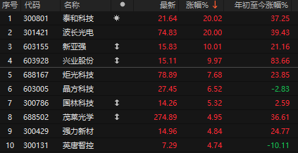 周末还有长鑫长存HBM、国产光刻机的相关消息催化,今天A股半导体板块走强,波长光电、泰和科技、中晶科技、大为股份等多股涨停。