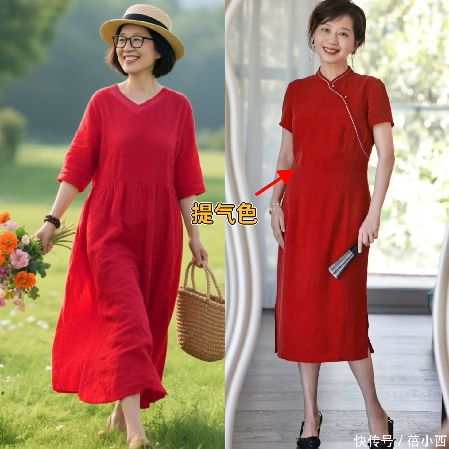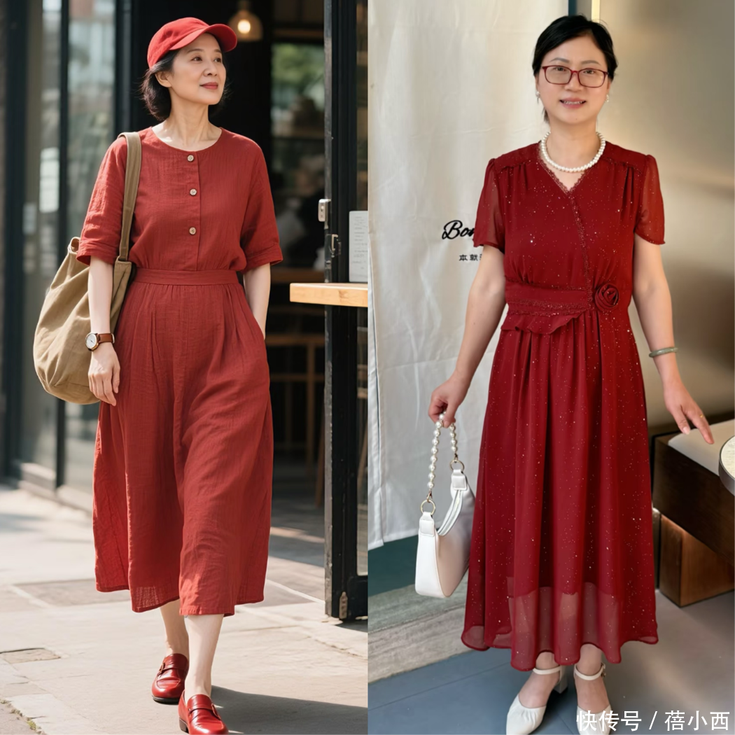中年女性穿红色,最忌用力过猛的艳丽。真正显高级的红,是像陈年酒浆般的“莫兰迪红”,或是带着灰调的“砖红”。
