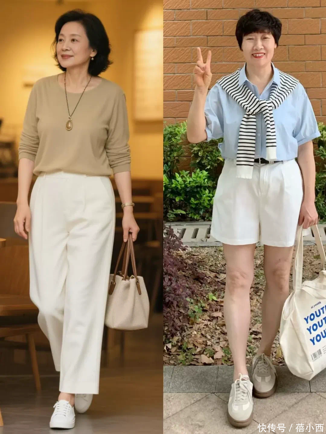 如果你不喜欢太艳丽的色彩,可以来试一下米白色,米白色比纯白色多了一丝暖意,比奶白色少了几分甜腻,是最能体现中年女性温润气质的颜色。