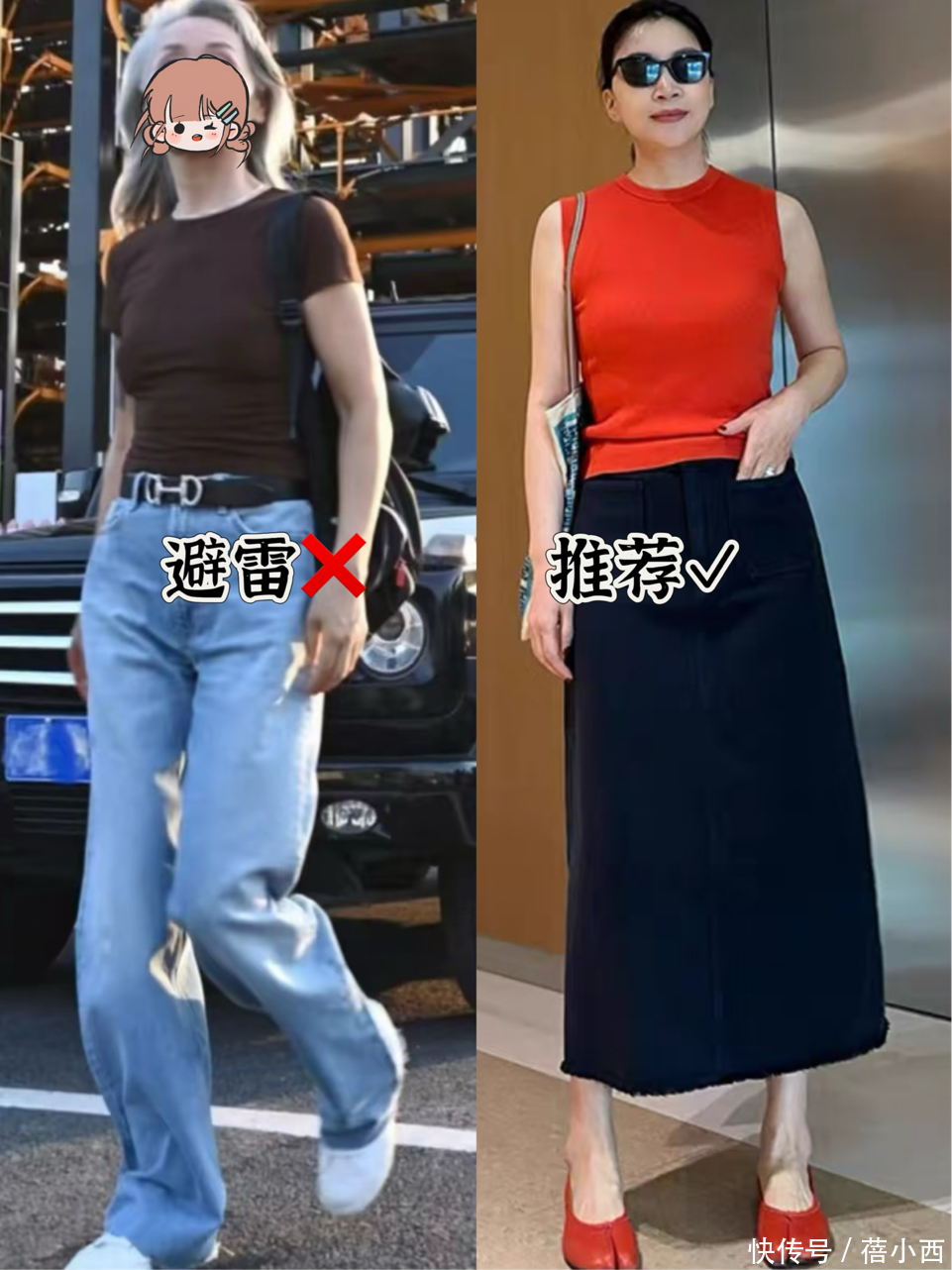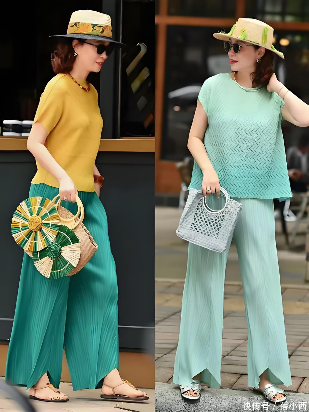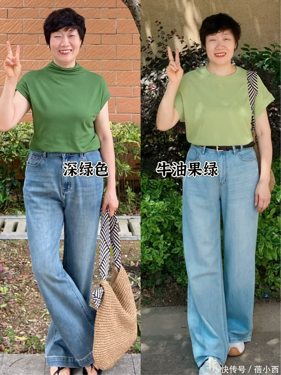 另外,穿搭款式要简约,上衣如果有花哨的图案,下装就选纯色,这样才能让颜色的优势充分发挥出来。