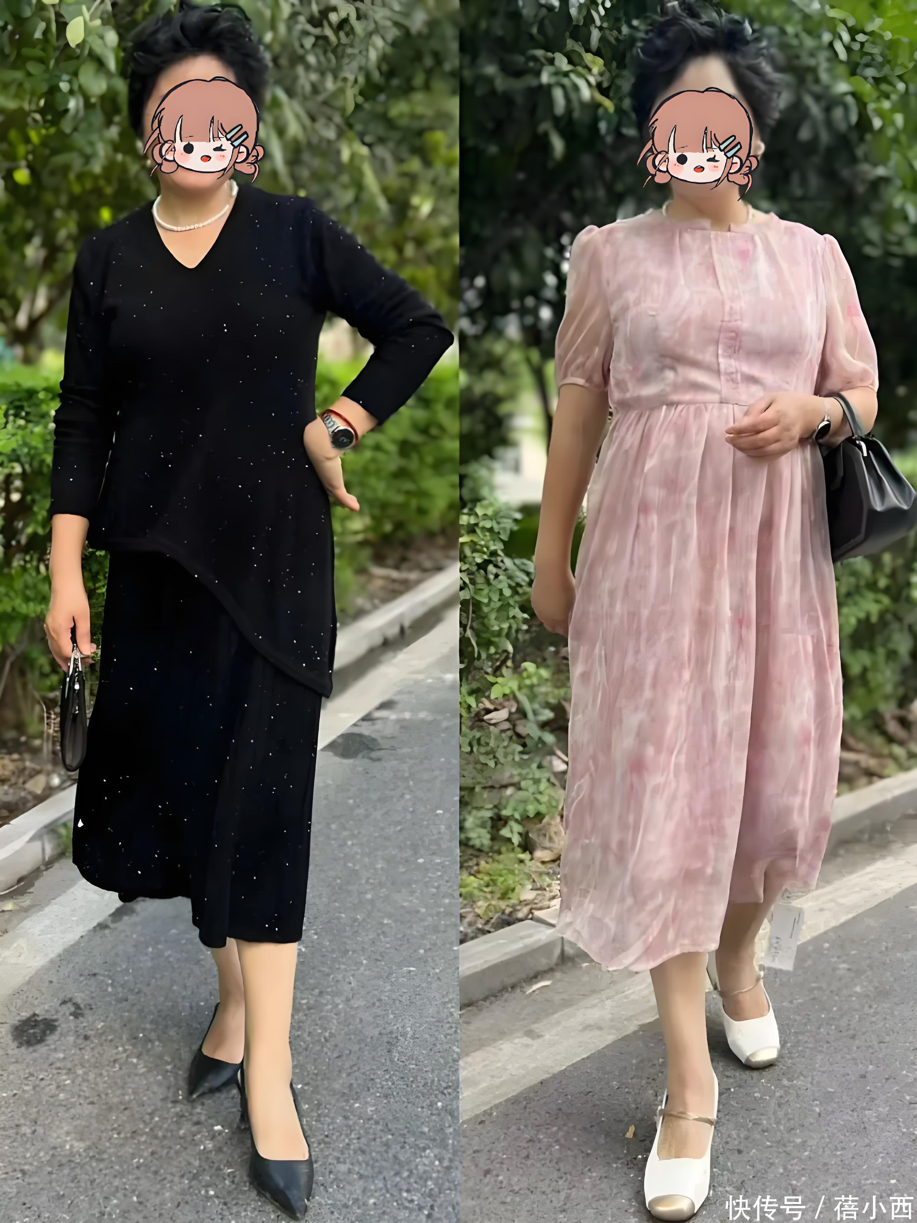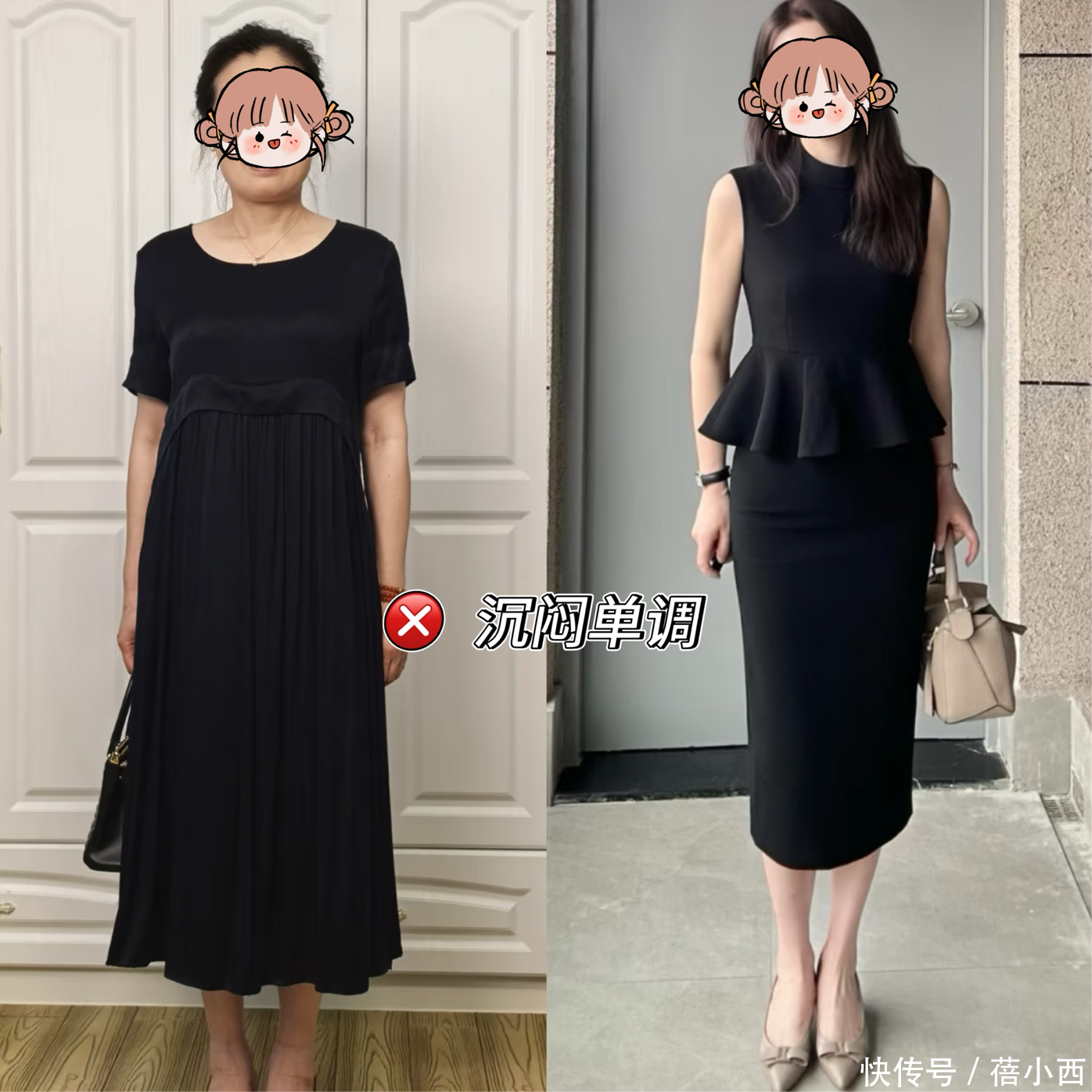 年纪大了,要是实在喜欢黑色,不妨减少黑色的面积,搭配亮色的服饰中和。
